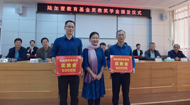 在对嘉应学院捐赠后,陆加壹还向大埔虎山中学、大麻中学颁发了奖教奖学金。李萍、邬大光、靳玉乐、卢晓中分别在两所中学的颁奖活动上发表精彩的演讲。