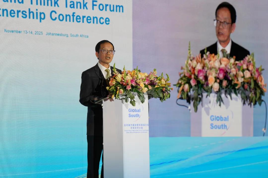 浙江师范大学非洲研究院院长、浙江省国际传播中心特聘专家刘鸿武在开幕式上致辞。他说,全球治理需要来自全球南方的智慧,需要来自非洲的智慧,也需要来自中非双方的智慧。他回顾了自己在浙江师范大学非洲研究院从事中非交流的经历,建议继续加强中非媒体和智库合作平台建设,拓展传播渠道,共同塑造话语体系,用互相听得懂的语言讲好各自故事,为全球南方崛起与共同利益提供高质量知识产品。