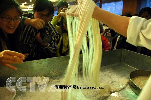 “千招易学,一窍难得”。拉面制作技术解放前曾被认为是“绝招”,秘而不传。解放后,逐渐在社会上得以公开,成为山西面案的基本功,受到山西饮食界的重视,并不断在实践探索中细分为小拉面(一根面)、大拉面(6至8扣)、龙须拉面(10扣以上),空心拉面等。现在,龙须拉面除食用之外,还作为一种表演艺术,拉至14扣时,共计28924根,相连长达25公里。全晋会馆的蒙眼拉面,还曾获得全国厨艺绝技超群奖,多次应邀赴日本、新加坡、台湾等国家和地区表演。今年年初,全晋会馆作为传承单位的龙须拉面,被列入第二批国家级非物质文化遗产保护名录,受到了国家的高度重视。龙须拉面制作,这一山西面食中技术性强的特色手工技艺和表演艺术,将在新时代焕发出传承文脉、走向和谐、造福社会的无比绚丽夺目的光彩。