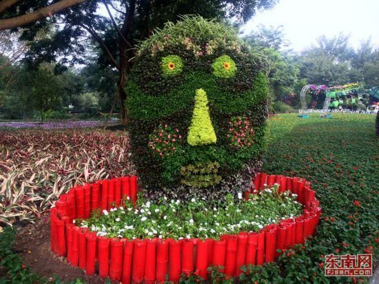 原标题:人形草雕、脸谱草雕 花博园新增多处趣味环保小造景