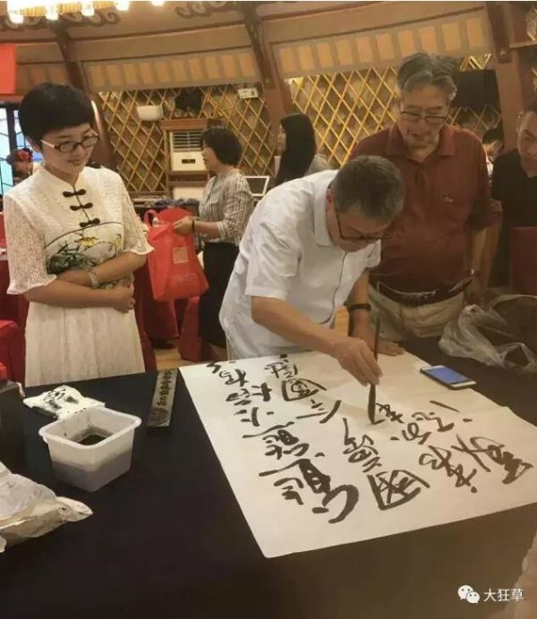 主办单位特邀书画艺术界著名书画家现场挥毫泼墨,为代表团赠送了书画作品。